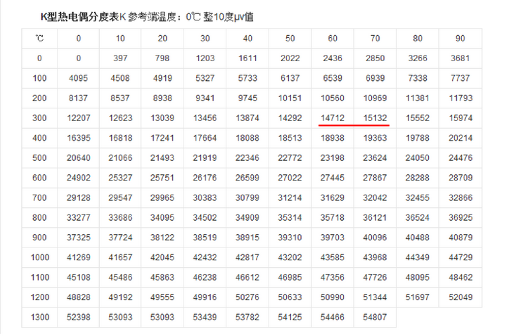 k型熱電偶溫度對照表