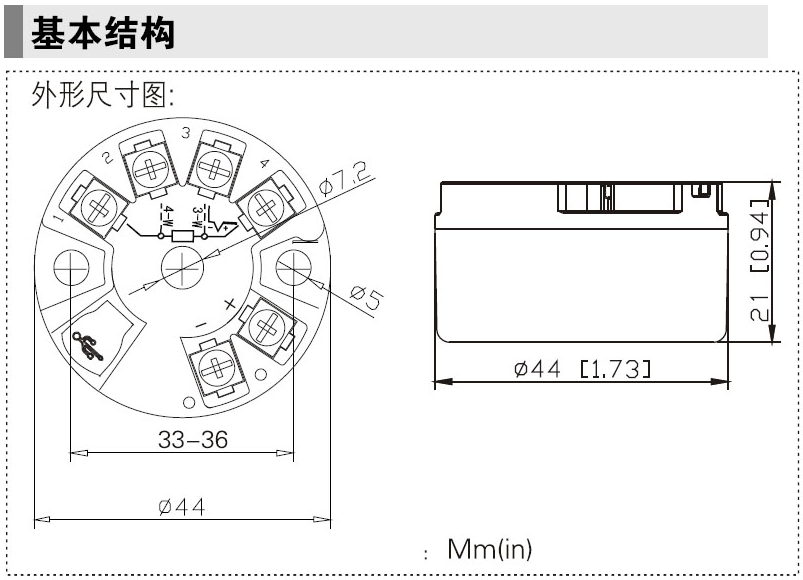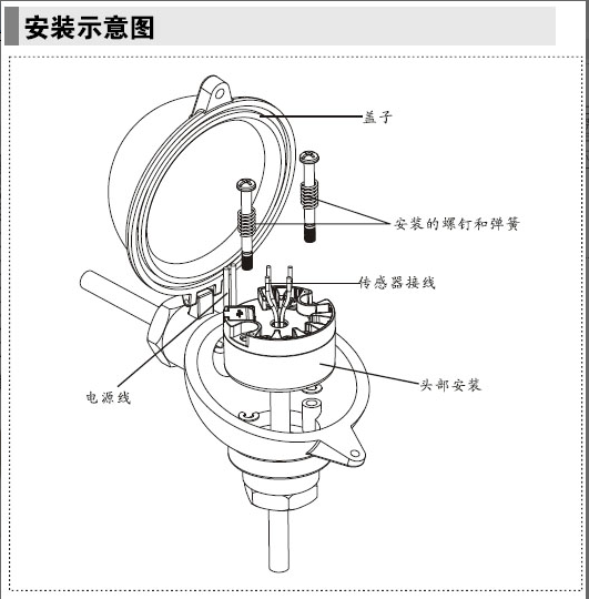 頭部安裝式智能溫度變送器,用于熱電阻(RTD)、熱電偶(TC)、電阻(Ω)、電壓(mV)信號輸入,二線制4~20mA模擬輸出,安裝于傳感器內部(Form B)。